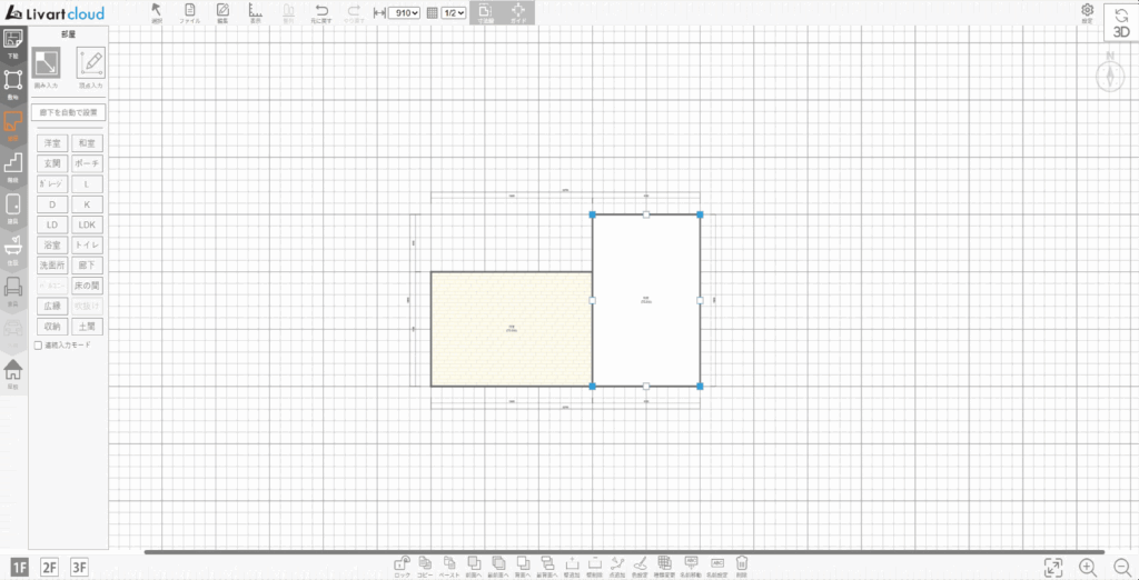 Livartcloudには、図面を作成できるシステムが導入されています。操作も簡単なため、賃貸物件・中古住宅の間取り図もらくらく作成できます。また、平面図以外にも3Dのパース図まで作成できます。
