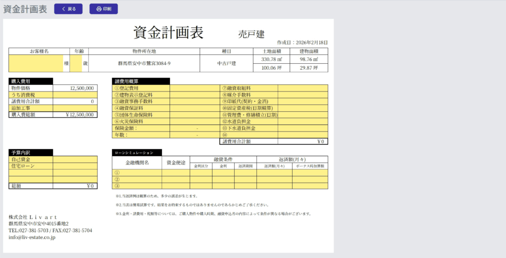 売買物件・賃貸物件・賃貸管理をシステムに登録することで、資金計画書・買付申込書・賃貸申込書・オーナー様へお渡しする送金精算証明書など、物件に紐ずいた資料がらくらく作成できます。
